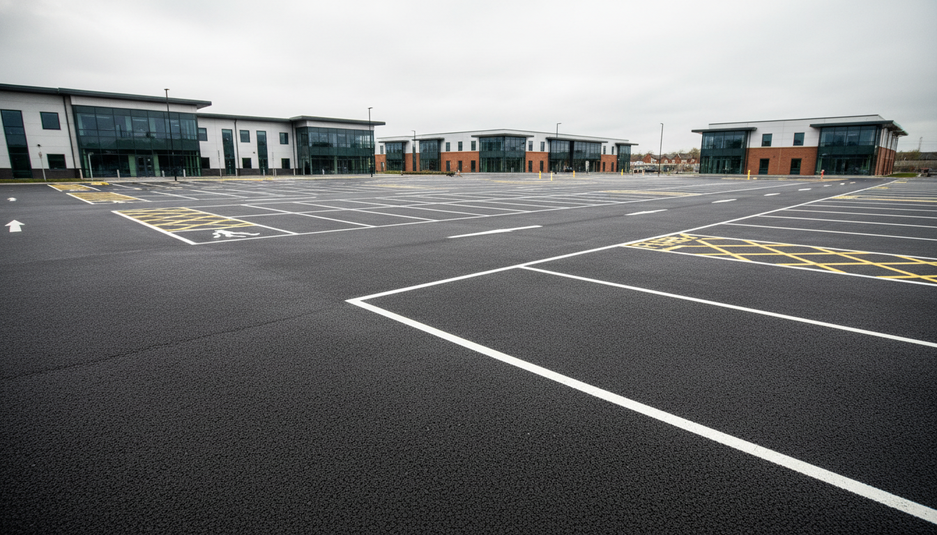Even on smaller commercial sites, clearly marked parking bays and access routes prevent congestion and improve overall organisation.