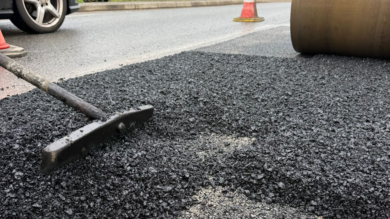The works included a full cut-out of the failed carriageway section, removing all compromised material to reach a sound base. The perimeter edges were saw cut to create clean, defined joints, ensuring proper bonding between the existing surface and the new installation.