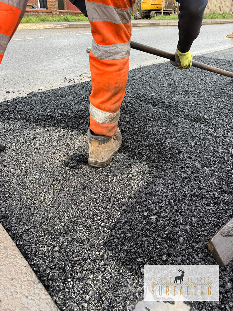 Following preparation and cleaning, fresh hot asphalt was installed and carefully levelled. The material was then professionally compacted using appropriate plant machinery to achieve a dense, durable finish capable of withstanding ongoing traffic loads.