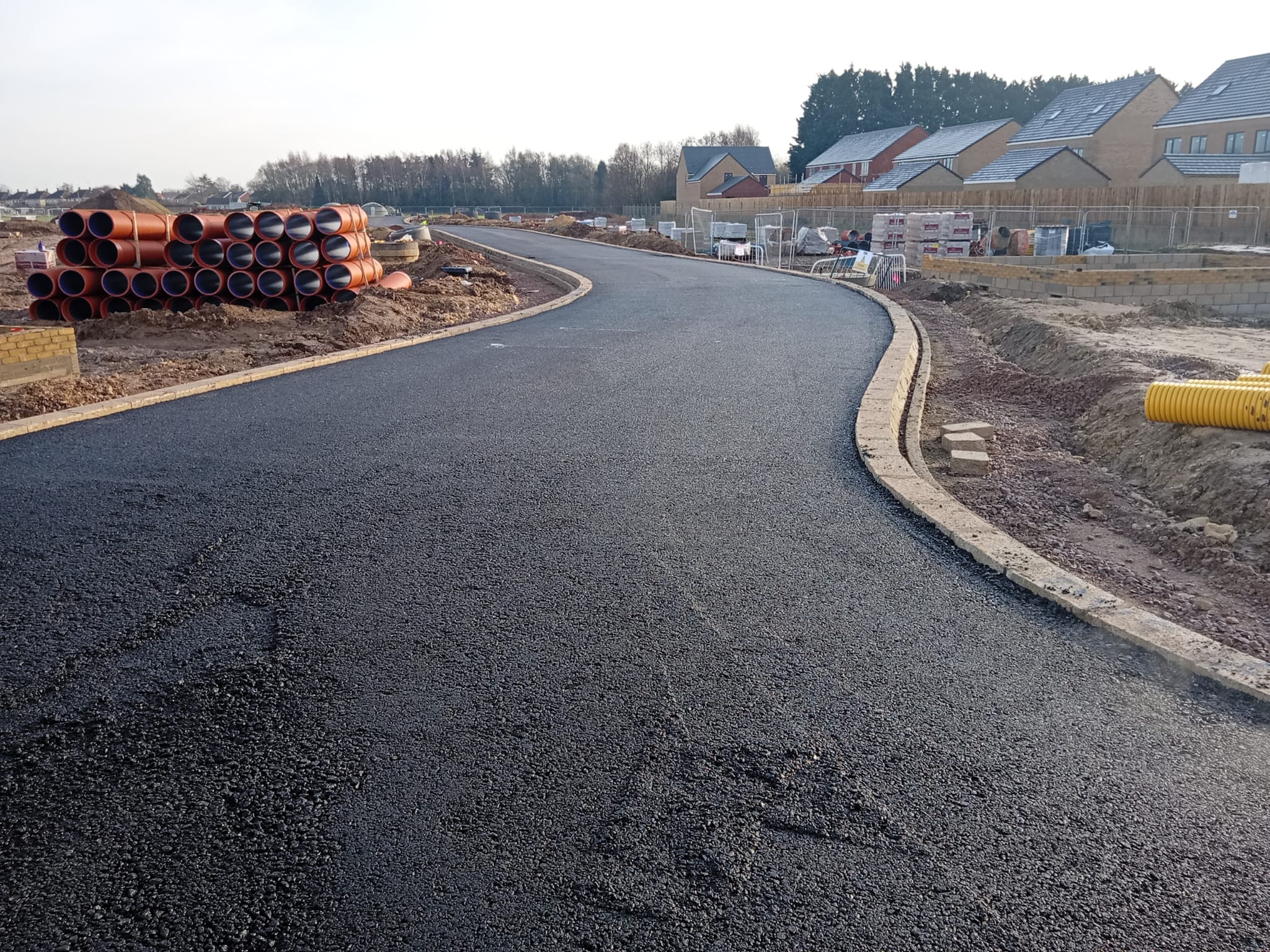 This project involved the full construction and surfacing of new access roads within a residential housing development. Our team delivered a high-quality tarmac surface designed to support long-term durability, safe vehicle movement, and a clean, professional finish suitable for modern estates.