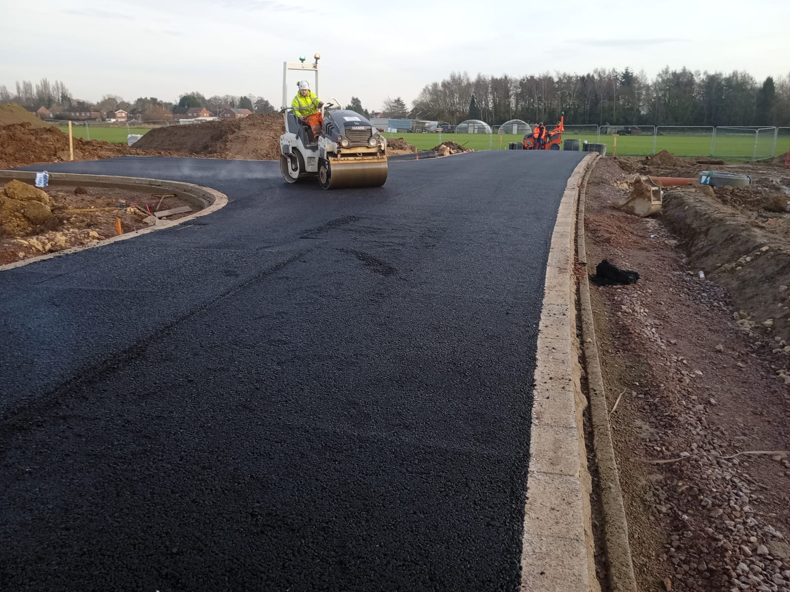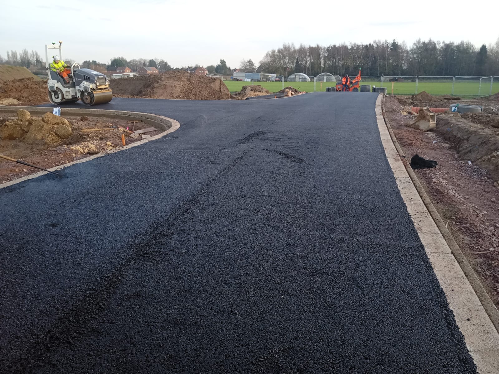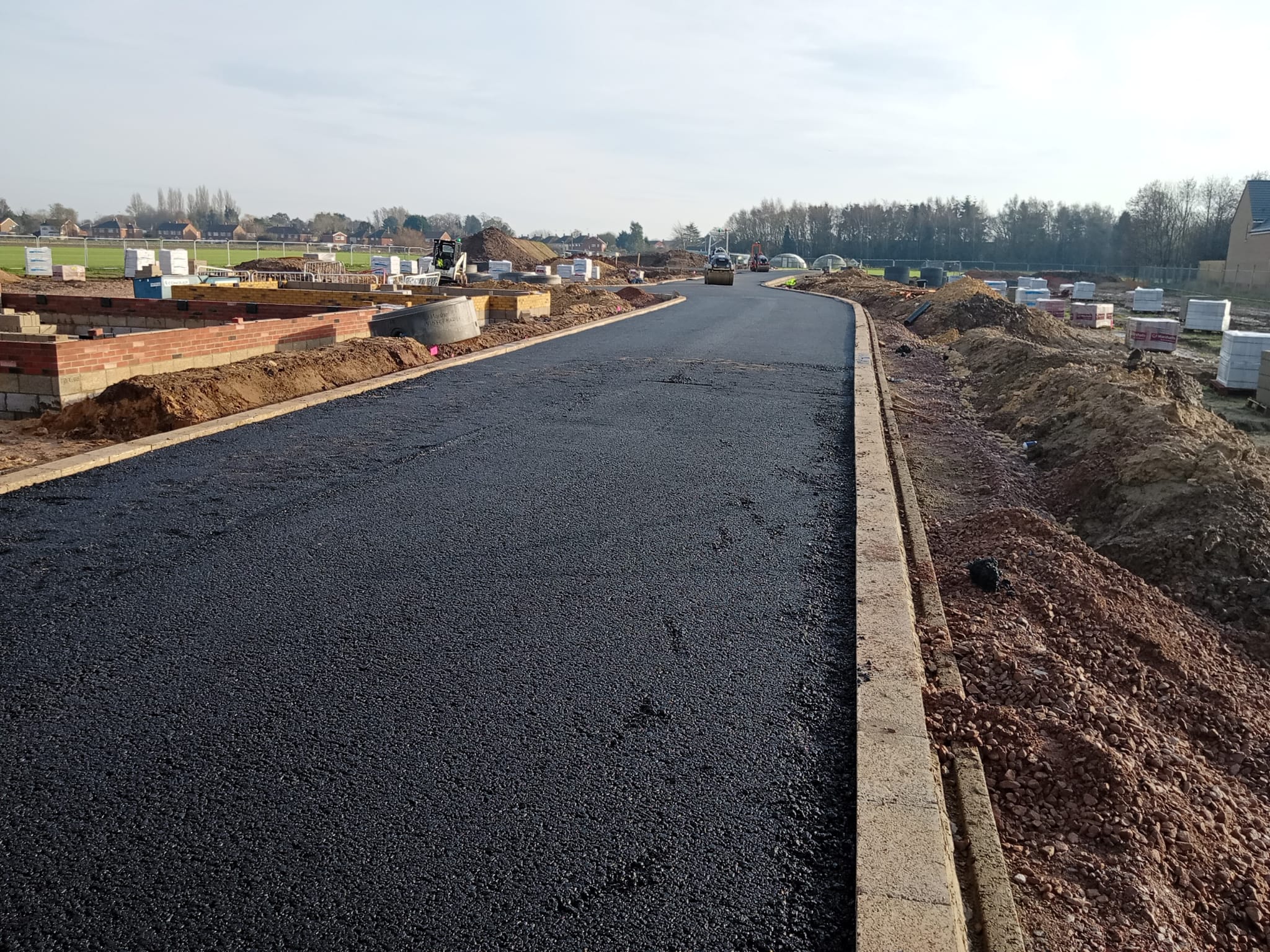 The completed road provides a strong, even, and visually clean surface that enhances the overall quality of the development. The finished tarmac roadway is built to handle regular residential traffic while maintaining long-term performance and low maintenance requirements.