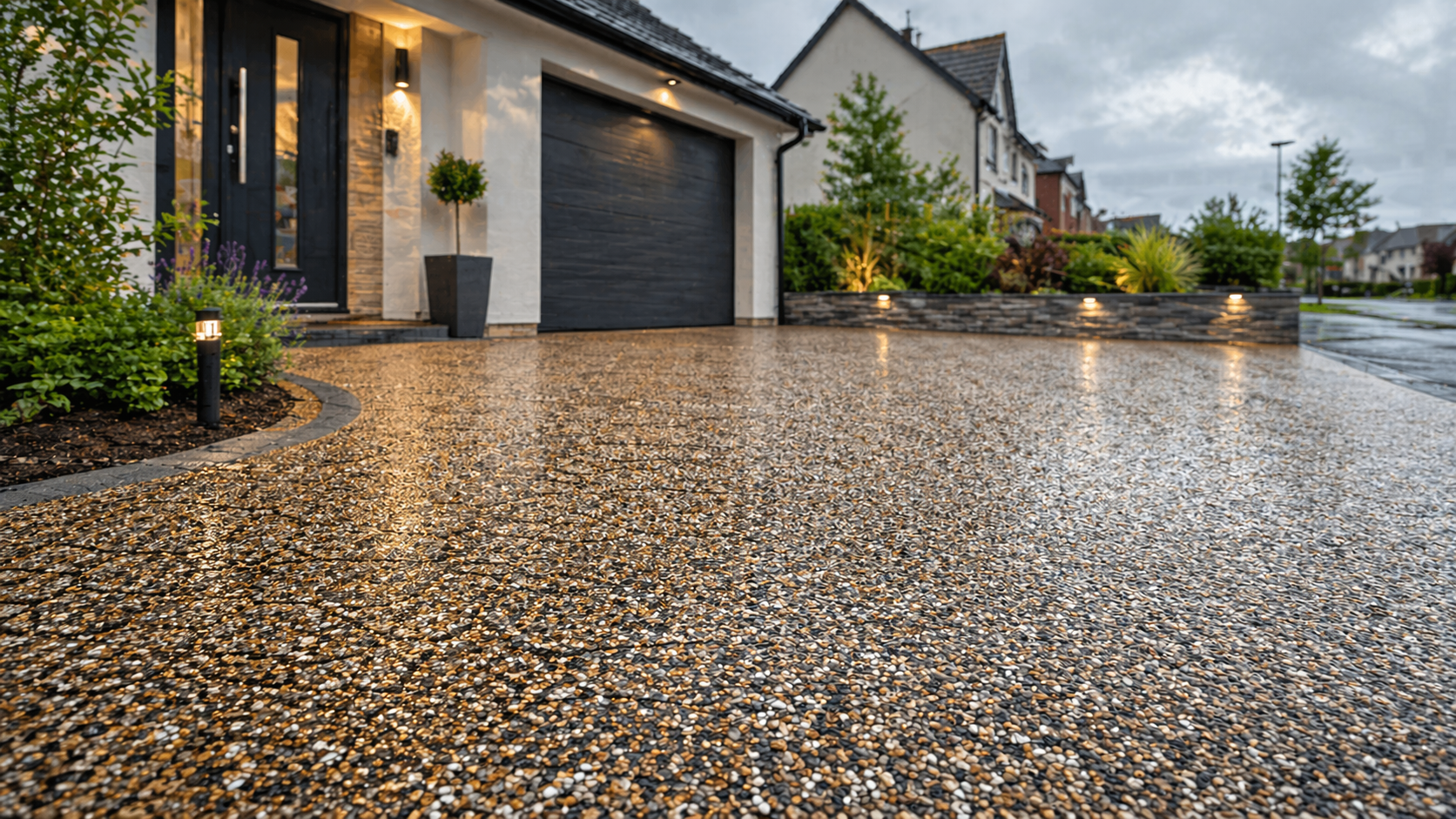 Resin bound systems are permeable, meaning water drains through the surface rather than pooling on top. This is particularly beneficial in the UK, where rainfall is consistent throughout the year.