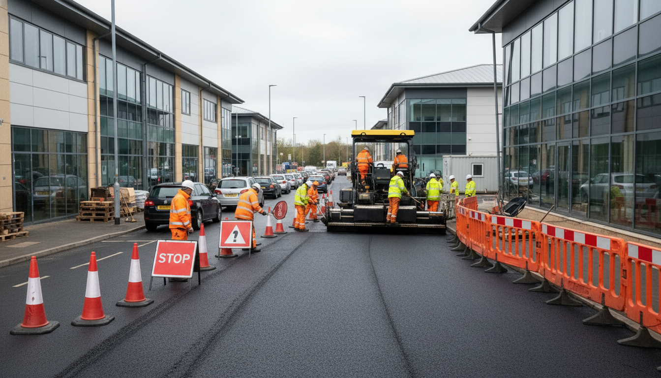 Freshly planed surfaces, exposed ironwork, and uncured asphalt can create trip or slip hazards if pedestrians stray into restricted areas. Effective road surfacing safety UK planning always accounts for alternative footpaths and supervised crossing points where required.